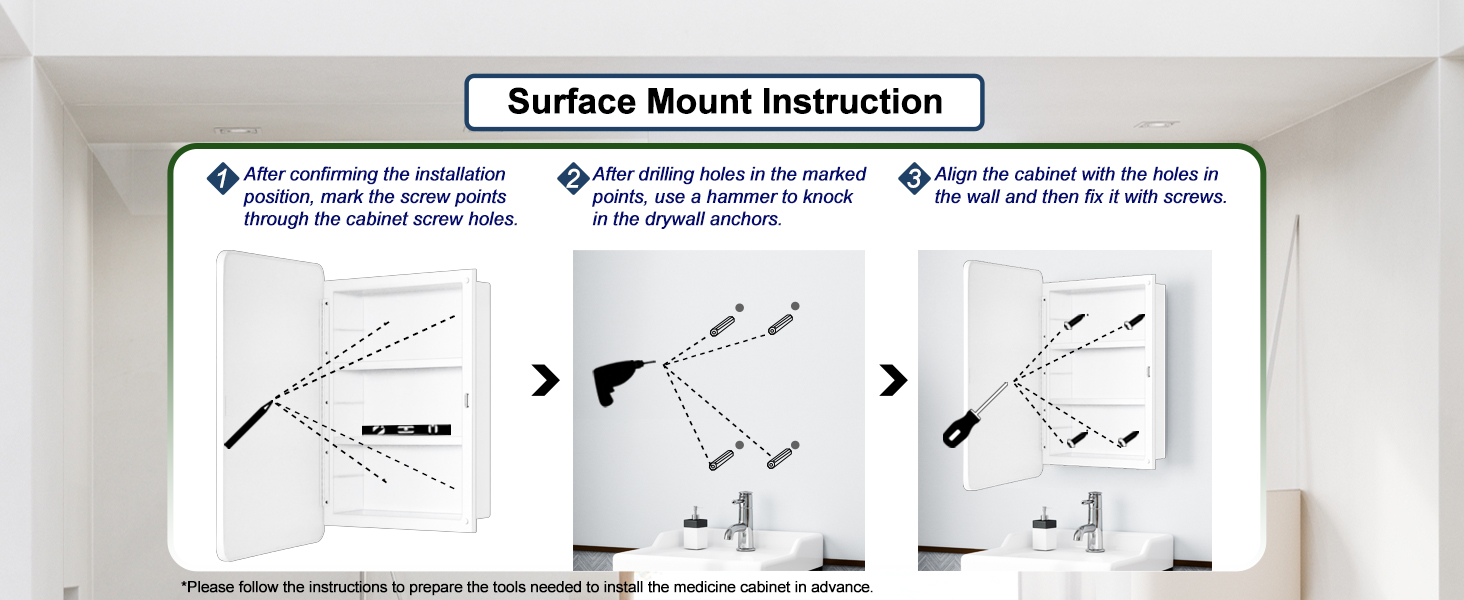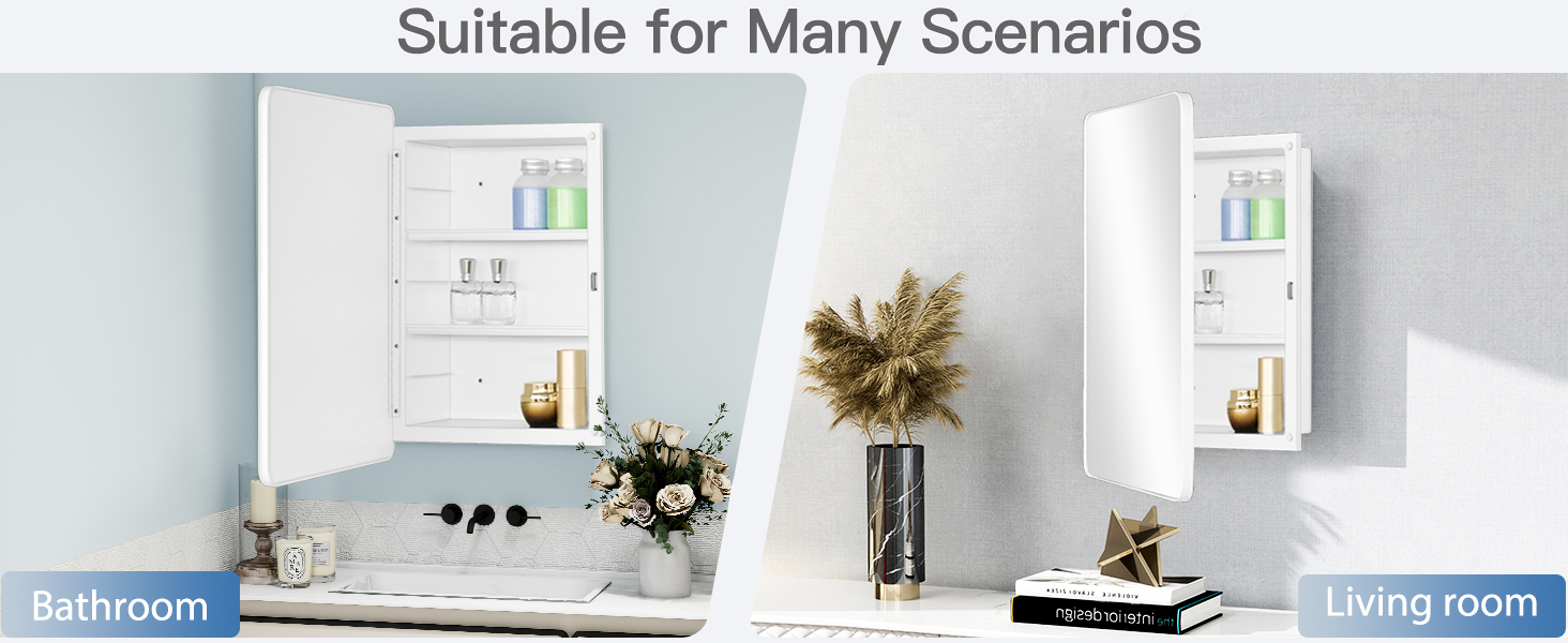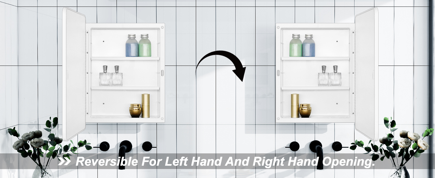 Overall Size: 16 x22 x4.2 inch , 406 x559 x106mm Rough in: 13.5 x17.5 x2.8 inch , 343 x445 x72mm Adjusted shelves: 2pcs Product Features:Recessed and surface mount
